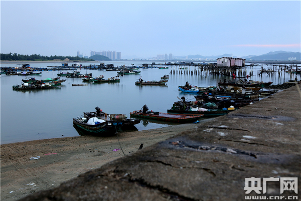 汕頭市濠江區(qū)漁民莊天攀:現(xiàn)在臺風(fēng)馬上到了,我要把漁排上的那些東西綁好、收好,還要加固那些錨和繩子。