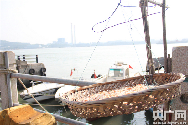 臺風(fēng)“天鴿”逼近廣東,受臺風(fēng)環(huán)氣流影響,汕頭地區(qū)氣流下沉,天氣悶熱。媽嶼島上漁民晾曬的蝦干。劉建高 攝