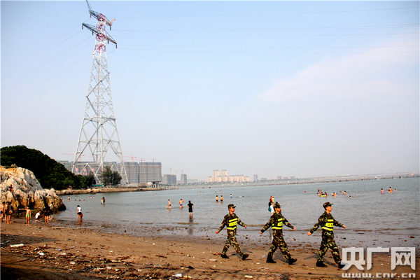 汕頭邊防支隊媽嶼邊防派出所官兵正在海灘巡邏。劉建高 攝