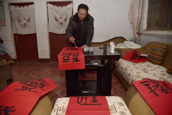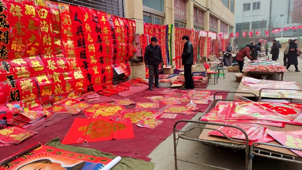在鶴壁市明清古村落大胡村附近,有一個(gè)幾十年不變的賣對聯(lián)的地方,這里的對聯(lián)掛滿了墻,打工的人們回來后,這個(gè)地方就擠滿了人,都來買稱心如意的對聯(lián)。