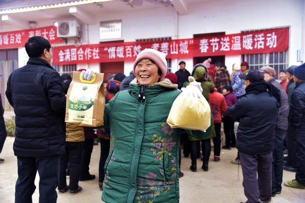 吃水不忘挖井人,致富不忘鄉(xiāng)親們。1月18日,在河南省鶴壁市石林鎮(zhèn)紅色革命古村落小寨溝村,本村金滿園合作社王海平免費(fèi)為村里160名六十歲以上的老人發(fā)5斤生態(tài)小米。王海平在村里能動200多人脫貧。村民王虎林說:俺村的王海平每年都給60歲以上的老人發(fā)東西,不管是端午節(jié),還是中秋節(jié)、重陽節(jié),都沒有忘記老年人,都給我們老年人發(fā)東西,真是個(gè)大好人啊,感謝他。