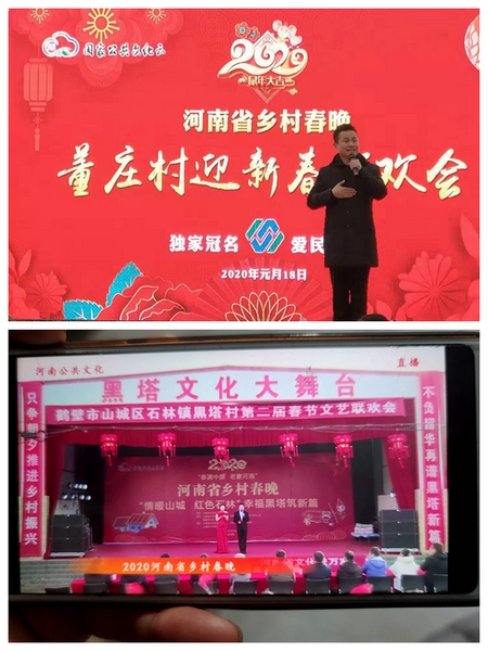 現(xiàn)在,農(nóng)村富余了,文化生活也豐富了,每個(gè)村都喜歡搞個(gè)鄉(xiāng)村春晚,這是鶴壁市石林鄉(xiāng)黑塔村和鶴壁市董莊村的春晚,遠(yuǎn)在他鄉(xiāng)的村民可以通過手機(jī)觀看直播。