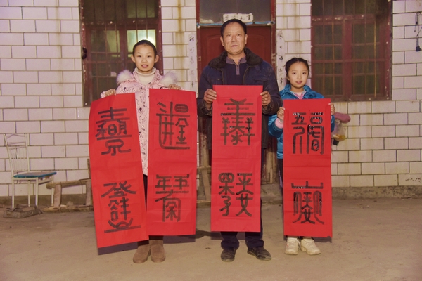 河南鶴壁淇縣馬疙瘩村60歲退休老教師朱全貴老師在家蒸好花糕后,緊接著要書寫對聯(lián),朱老師在鄉(xiāng)里任教幾十年,桃李滿天下,每年他都幫助別人寫對聯(lián),這是他自己獨(dú)創(chuàng)的書寫對聯(lián)方式,大家猜猜這是啥字?