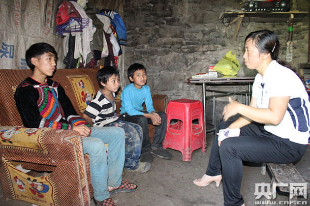 如今,村里孩子的父母大都外出打工,留守看護學(xué)校期間,宋志芳還會經(jīng)常到留守學(xué)生家里走一走。步行20多分鐘山路后,宋志芳來到吉牛以夫三兄弟家里。今年三月,吉牛以夫的父母就去了內(nèi)蒙古打工了,年齡稍大的吉牛以夫承擔(dān)起了照顧兩個弟弟的生活和學(xué)習(xí)。宋志芳:你要帶著弟弟他們,要帶著他們好好的把作業(yè)完成。千萬別帶他們?nèi)ズ訙侠锩嫦丛琛?/p>