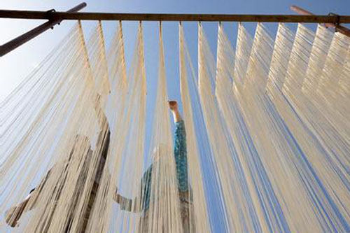 中江掛面的工藝是非常繁瑣講究的,他要經歷八道工序,歷時16個小時才能精制而成。作為中江掛面?zhèn)鞒腥绥娗闪窒蛴浾呓榻B了掛面的制作工藝。