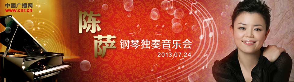 聆聽民族經(jīng)典,共享藝術(shù)精品。中央臺文化發(fā)展工程今年將陸續(xù)推出一組大師系列音樂會。7月24日晚,中央人民廣播電臺音樂廳上演陳薩鋼琴獨(dú)奏音樂會。陳薩,中國新一代青年女鋼琴家。1979年生于重慶市,7歲學(xué)習(xí)鋼琴,9歲進(jìn)入四川音樂學(xué)校師從但昭義教授,從10歲開始,便屢獲大獎,包括中國全國少年鋼琴邀請賽少年組第一名、"珠江杯"全國少年鋼琴邀請賽專業(yè)組第一名、首屆中國國際鋼琴比賽青年組第一名。