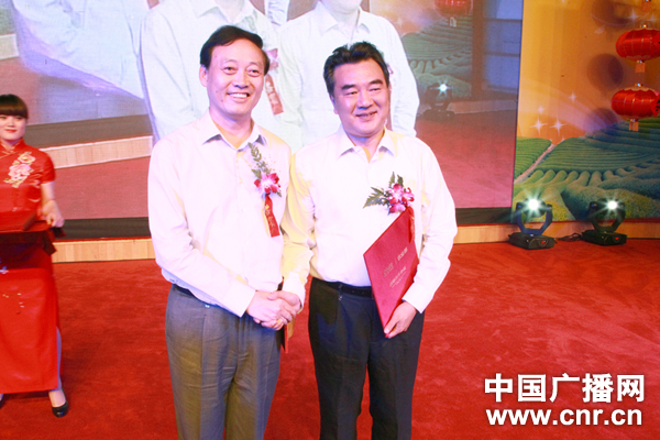 中央人民廣播電臺(tái)臺(tái)長(zhǎng)王求(右一)和國(guó)家農(nóng)業(yè)部副部長(zhǎng)余欣榮