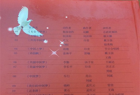 中國(guó)夢(mèng)主題新創(chuàng)作歌曲曲目單
