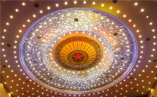 央廣網(wǎng)北京9月14日消息 第五屆全國少數(shù)民族文藝會演頒獎儀式暨閉幕式文藝晚會,9月14日晚將在京西賓館禮堂隆重舉行。在中秋佳節(jié)臨近之際,京西賓館禮堂為迎接這五年一次的少數(shù)民族藝術(shù)盛宴,劇院上方的五角星隨多彩燈光煥發(fā)出熠熠光輝,營造出“花好月圓,樂動人心”歡樂祥和的氛圍。