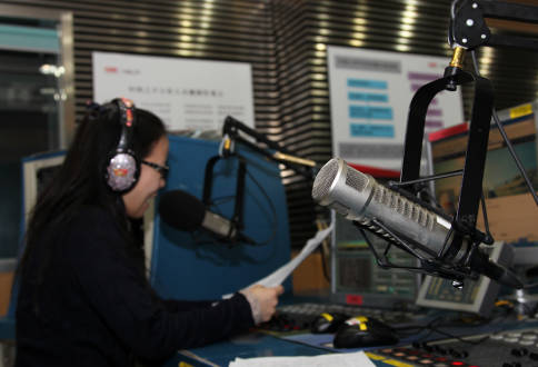 中國(guó)之聲《中國(guó)大舞臺(tái)》主持人蔣術(shù)正在與嘉賓交流互動(dòng)
