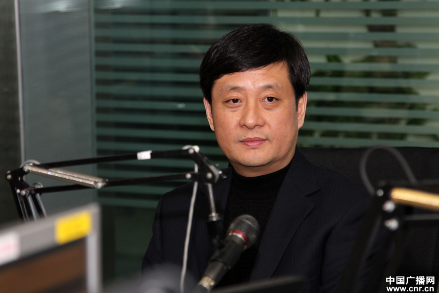國家京劇院副院長尹曉東做客中國之聲《中國大舞臺》。(中廣網 張曈攝)