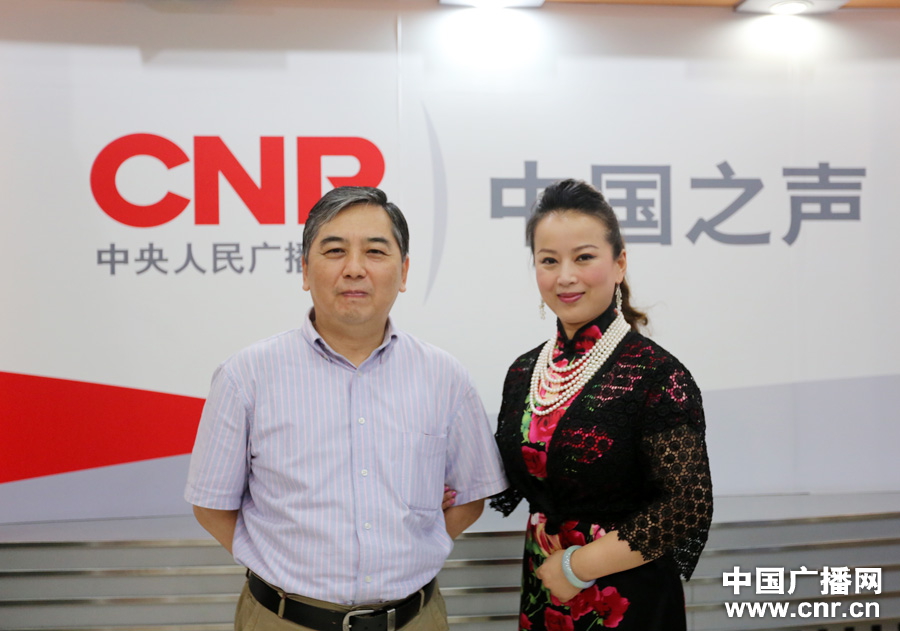 北京京劇院青年演員王奕謌(王奕戈)與中國戲劇家協(xié)會(huì)副秘書長崔偉做客《中國大舞臺》(中廣網(wǎng) 張曈攝)