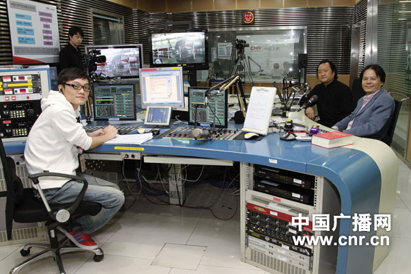 《華韻盛典》導(dǎo)演,中國廣播民族樂團(tuán)團(tuán)長張高翔先生(右),音樂會(huì)指揮、中國廣播民族樂團(tuán)著名指揮家張列(右二)先生做客中國大舞臺(tái)。