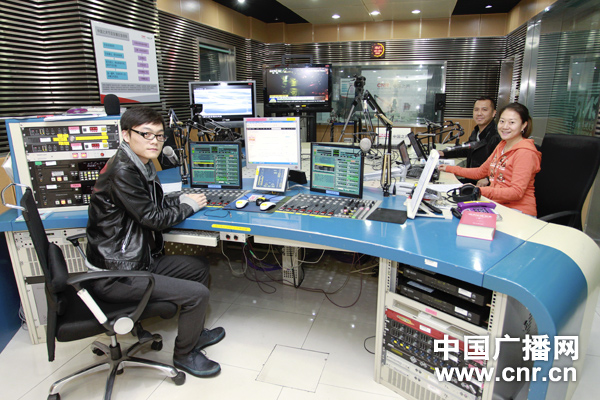胡凡、章瑩瑩、田龍?jiān)凇吨袊笪枧_(tái)》節(jié)目直播中