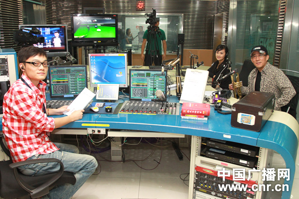 主持人胡凡(左)、中國廣播藝術(shù)團(tuán)創(chuàng)研室主任、國家一級演員、著名的小號演奏家劉學(xué)俊(右)、中國廣播藝術(shù)團(tuán)獨(dú)唱演員尹嵐(中)。