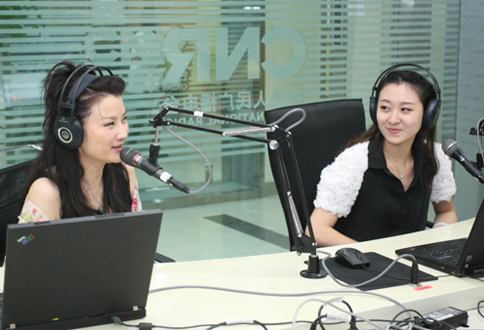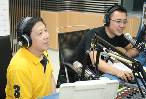 中央人民廣播電臺(tái)臺(tái)長(zhǎng)王求與邵恩在直播間合影留念