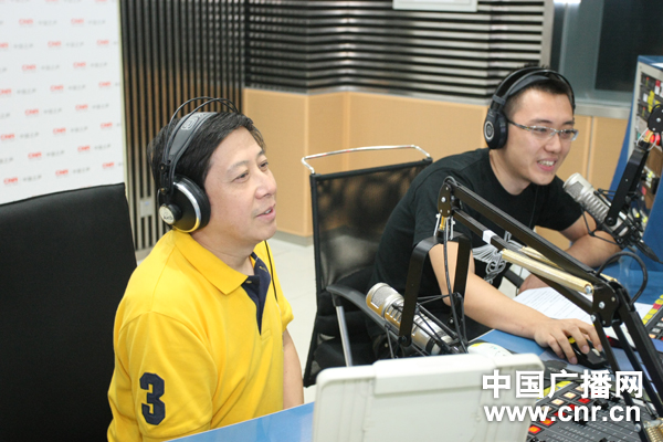 中國(guó)廣播藝術(shù)團(tuán)著名歌唱家魏金棟(左)與主持人楊昶(右)(中廣網(wǎng)記者陳江南_攝)