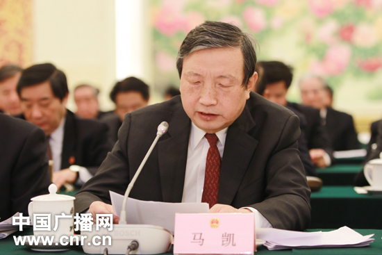 國(guó)務(wù)委員兼國(guó)務(wù)院秘書長(zhǎng)馬凱同志發(fā)言(中廣網(wǎng)記者徐陽(yáng) 攝)