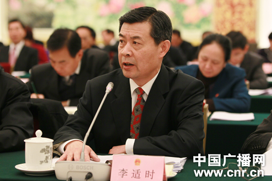 全國人大常委會(huì)法制工作委員會(huì)主任李適時(shí)發(fā)言(中廣網(wǎng)記者 徐陽 攝)