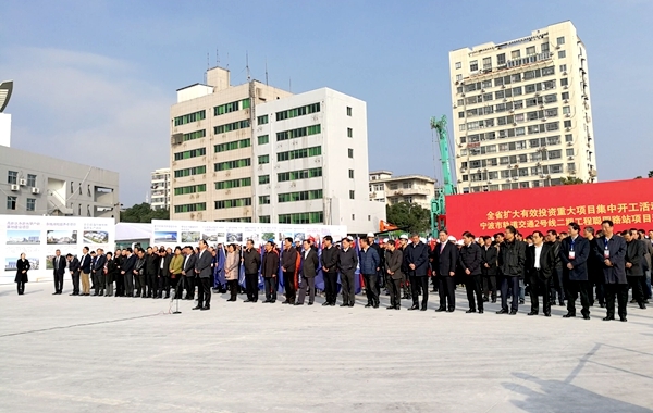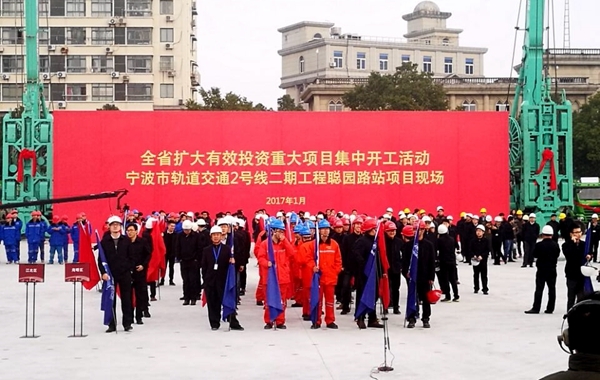 省委常委、寧波市委書(shū)記、代市長(zhǎng)唐一軍在向主會(huì)場(chǎng)匯報(bào)時(shí)說(shuō):2016年,寧波市兩批集中開(kāi)工項(xiàng)目157個(gè)已全部按時(shí)開(kāi)工建設(shè),超額完成全年投資任務(wù)。預(yù)計(jì)全年完成有效投資4960億元,同比增長(zhǎng)10%。2017年,寧波將力爭(zhēng)實(shí)現(xiàn)有效投資增長(zhǎng)10%,F(xiàn)在,我們?cè)趯幉ㄊ熊壍澜煌?號(hào)線(xiàn)二期聰園路站項(xiàng)目現(xiàn)場(chǎng),全市共有88各項(xiàng)目參加集中開(kāi)工活動(dòng),總投資達(dá)1029億元,其中投資100億元以上項(xiàng)目1個(gè)、50億元以上項(xiàng)目3各、20億元以上項(xiàng)目13個(gè)。項(xiàng)目開(kāi)工準(zhǔn)備工作就緒,請(qǐng)指示。