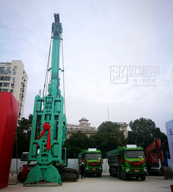在開(kāi)工儀式現(xiàn)場(chǎng),十?dāng)?shù)臺(tái)大型工程車(chē)、打樁機(jī)一字排開(kāi),幾十塊大型展板整齊陳列,不少頭戴安全帽的工人已經(jīng)擼起袖子干了起來(lái)。不遠(yuǎn)處“秉持浙江精神,干在實(shí)處,走在前列,勇立潮頭”、“樹(shù)立‘六心’提振‘六氣’,奮力躋身全國(guó)大城市第一方隊(duì)”的標(biāo)語(yǔ)格外醒目。