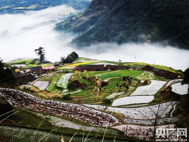 在麗水遂昌縣高坪鄉(xiāng)箍桶丘村北斗崖梯田,這里的村民們運肥澆地、耕地播種、搭棚覆膜......到處呈現(xiàn)出一派生機勃勃的“春耕備播圖”。據(jù)了解,“班春勸農(nóng)”是遂昌的傳統(tǒng)迎春文化形式,起源于明朝湯顯祖在遂昌任知縣時期,“班春”即頒布春令,“勸農(nóng)”以勸農(nóng)事,策勵春耕。自古以來在遂昌任職的縣級長官都要在春耕來臨之際,舉行鞭春禮儀,頒布春令、勸農(nóng)耕作,名曰“班春勸農(nóng)”。