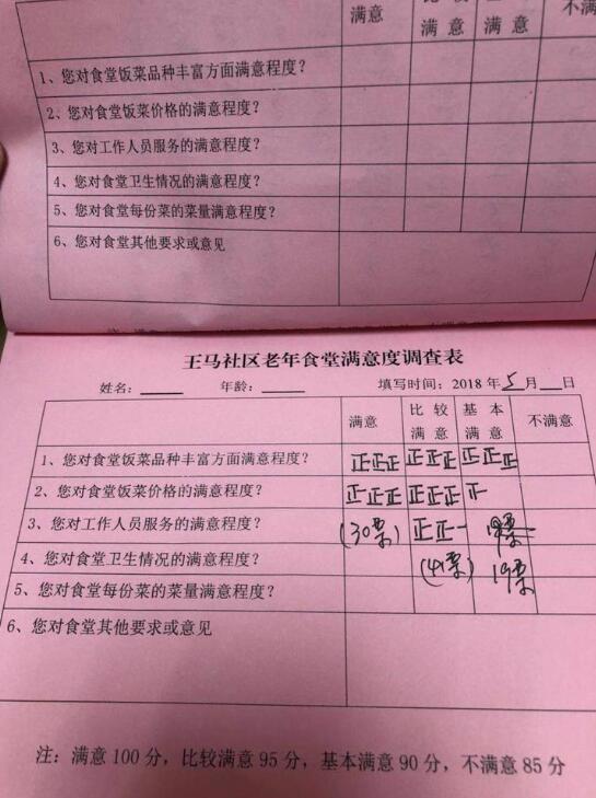 王馬社區(qū)老年食堂滿意度調(diào)查表