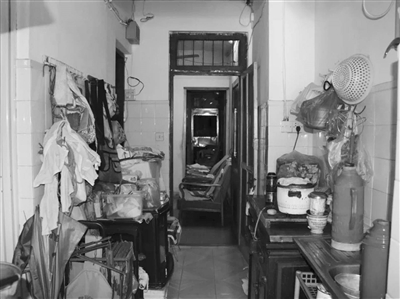一走進(jìn)家門(mén),是一條長(zhǎng)長(zhǎng)窄窄的走道,通到臥室。由于沒(méi)有窗戶(hù)采光,又堆了柜子、箱子、座椅等家具,整個(gè)走道看上去昏暗又擁擠。而這里就是吳奶奶做飯和用餐,每天進(jìn)進(jìn)出出最多次的地方。