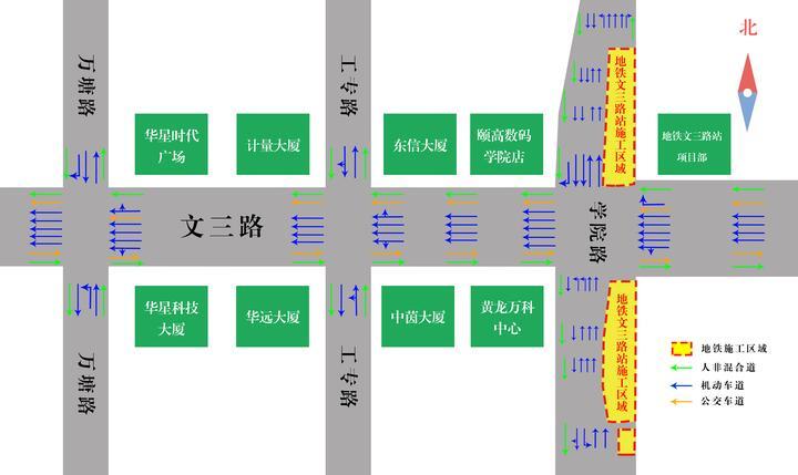 文三路站一期工程施工期間交通示意圖