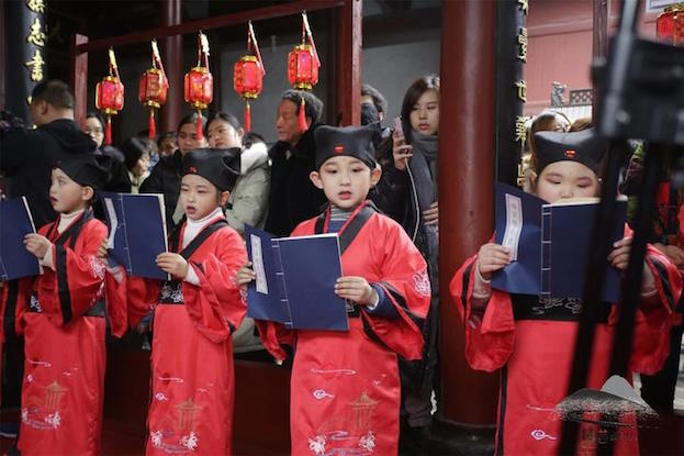 在12日舉行的樓塔年俗文化節(jié)上年“嗣”活動--仙巖樓氏報添丁儀式中,有95名仙巖樓氏男女新丁登記入籍,在現(xiàn)場,20多名新丁身著明代服飾,接受了已傳承三百余年的樓氏家訓(xùn)教育。