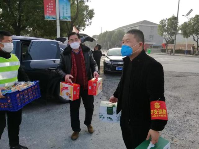 守望相助,眾志成城。為執(zhí)勤人員送口罩、食品、熱水、取暖器……各村涌現(xiàn)踴躍“支前”的暖心故事。陸家浦村村民陸孫權看到卡點撐傘值班的情況后,送來了兩只集裝箱,為工作人員遮風擋雨。東洲村村民蔡森飛身在海南,心系家鄉(xiāng),聯(lián)系超市老板送快餐面和火腿腸給堅守在一線的“紅袖章”。
