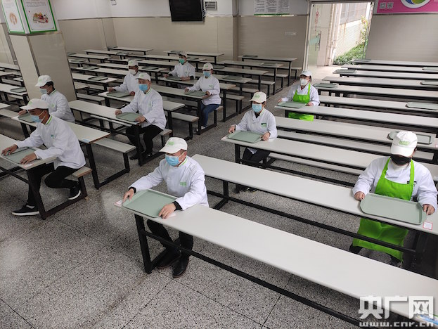 食堂是另一個人員比較密集的場所,作為一所老城區(qū)的學(xué)校,杭十一中的餐廳就餐面積很小,如何要讓學(xué)生快速用餐、減少接觸感染呢?“錯時用餐、固定套餐、快速取餐、間隔就餐”,杭十一中副校長張冠超總結(jié)說。除此之外,杭十一中還將餐桌用紅、黃、藍(lán)、綠四個顏色進(jìn)行區(qū)分,每個人只能坐在自己班級相對應(yīng)的顏色區(qū)域,錯位排列,避免面對面就餐。