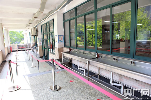 “在下周高三學(xué)生復(fù)課之前,我們已經(jīng)對(duì)學(xué)生進(jìn)入食堂的線路包括學(xué)生用餐的位置都做了定點(diǎn)定人的處理。學(xué)生在進(jìn)入食堂就餐之前需要用免洗洗手液進(jìn)行手部消毒工作,而食堂門(mén)口排隊(duì)則是按照地上標(biāo)注的每個(gè)紅點(diǎn)一個(gè)人,間隔一米排隊(duì)”,長(zhǎng)征中學(xué)副校長(zhǎng)朱理清告訴記者。