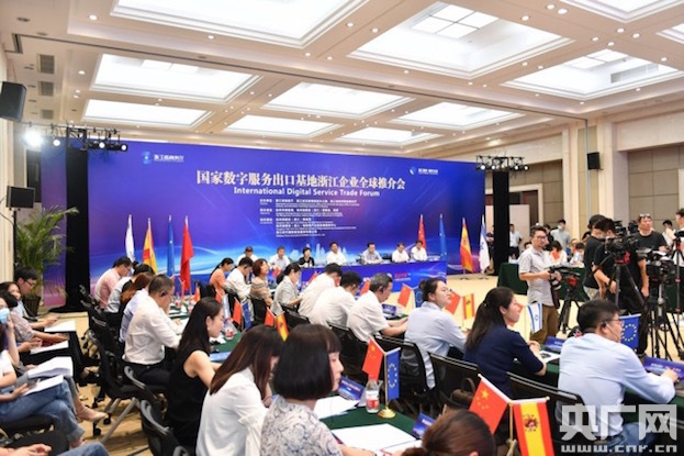 “在浙江致力于打造數(shù)字經(jīng)濟‘一號工程’的成果下,需要抓住機遇,找準(zhǔn)定位,大力發(fā)展以數(shù)字技術(shù)為支撐、高端服務(wù)為先導(dǎo)的‘服務(wù)+’整體出口”,浙江省商務(wù)廳廳長盛秋平在會上說,“我們要進一步加強與境外相關(guān)機構(gòu)和企業(yè)的合作,促進交流、分享經(jīng)驗,努力將基地打造成浙江省乃至我國發(fā)展數(shù)字貿(mào)易的重要載體和數(shù)字服務(wù)出口的集聚區(qū)!