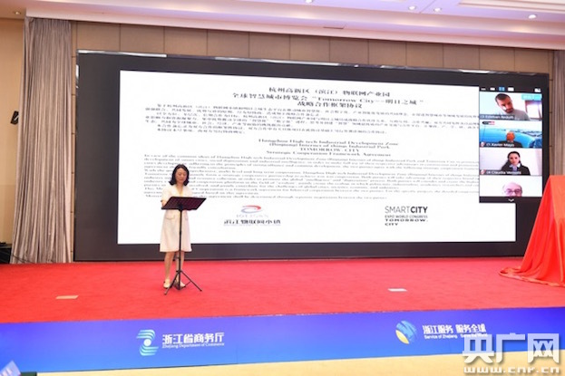 央廣網(wǎng)杭州6月11日消息(記者謝夢潔 魏煒 實習(xí)生李維雯 通訊員宋桔麗 張潔)6月11日,第22屆(網(wǎng)上)浙洽會——國家數(shù)字服務(wù)出口基地浙江企業(yè)全球推介會在杭州舉辦。本次推介會通過線上線下相結(jié)合的形式舉行,會上,國家數(shù)字服務(wù)出口基地在濱江物聯(lián)網(wǎng)產(chǎn)業(yè)園正式揭牌。此外,杭州高新區(qū)(濱江)物聯(lián)網(wǎng)產(chǎn)業(yè)園與“Tomorrow City--明日之城”項目戰(zhàn)略合作備忘錄簽約儀式也一同進行。