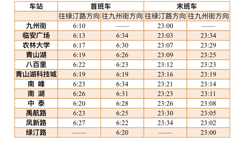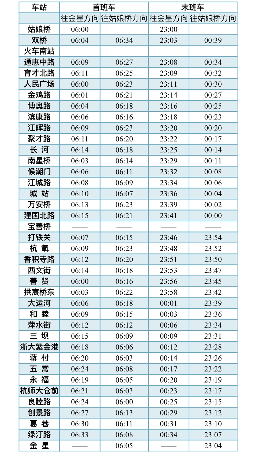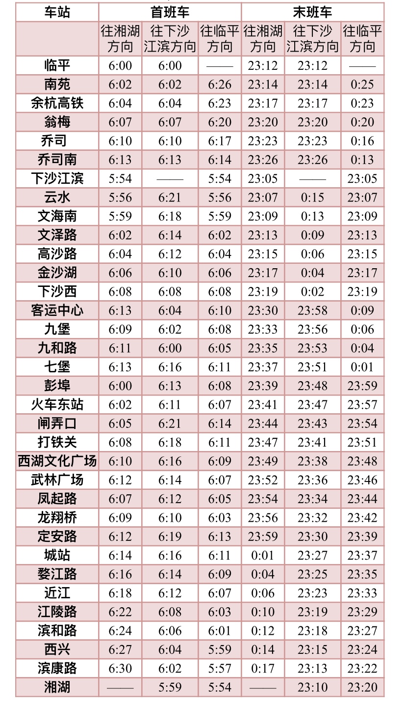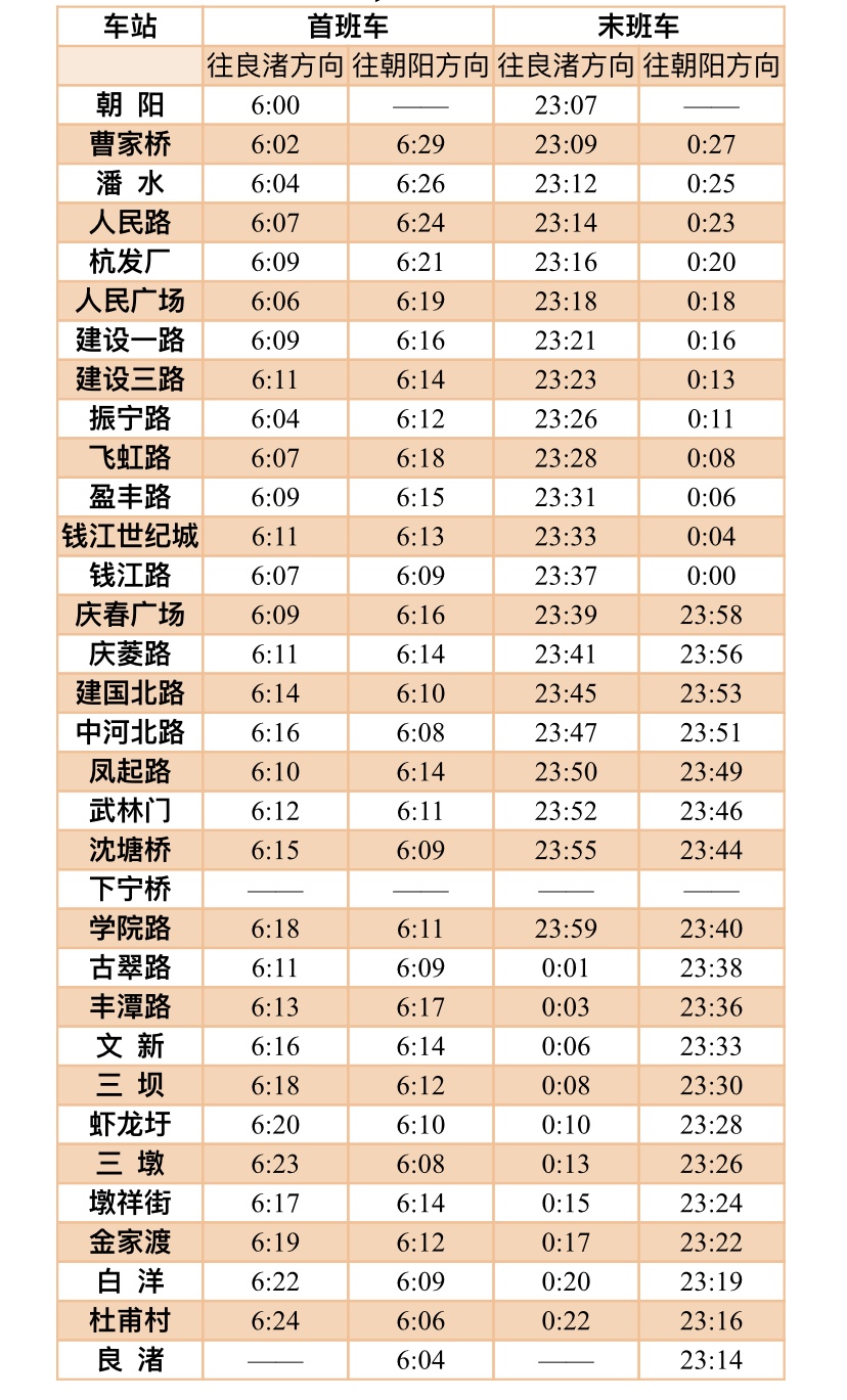 16號線首末班車時(shí)間(6月24日、6月27日,延時(shí)半小時(shí))