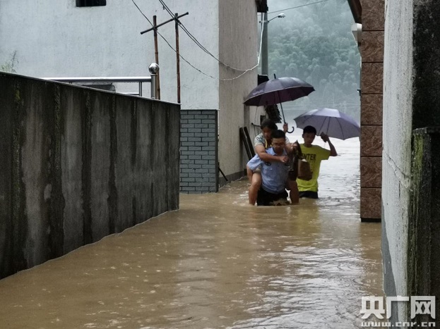 “咚咚咚!”一陣急促的敲門(mén)聲。清晨6點(diǎn),臨岐鎮(zhèn)臨岐村附近的溪流水位線暴漲,不少房屋開(kāi)始浸水,還在熟睡中的村民洪小女被巡查的村兩委干部叫醒并勸阻撤離。50歲的洪小女家住臨溪的一幢矮房,此時(shí)屋子浸水已到腰部,但是因?yàn)樯岵坏眉抑形锲,無(wú)論村干部如何勸說(shuō)都不肯離開(kāi)。情急之下,臨岐派出所民警張峰不經(jīng)思索就沖進(jìn)洪小女家中,將洪小女背起趟水轉(zhuǎn)移!爱(dāng)時(shí)水深已經(jīng)超過(guò)0.6米了,不能再猶豫。洪大姐一定會(huì)理解我們工作的!币咽桥R岐村入黨積極分子張峰說(shuō)。