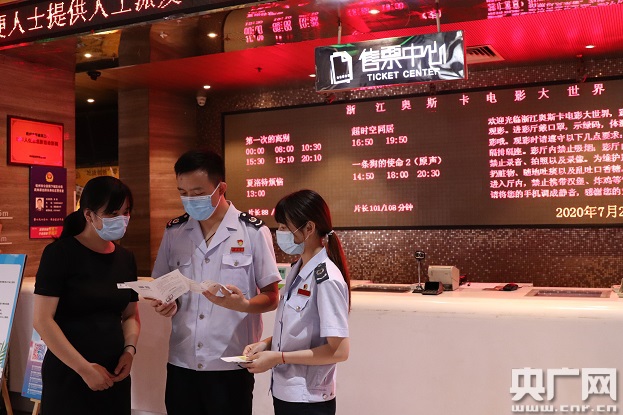 7月20日零點,全國影院復工后第一場電影在位于杭州的浙江時代電影院線杭州奧斯卡影城放映。當日,杭州市稅務部門來到杭州奧斯卡影城,為復工影院送上稅費優(yōu)惠政策解讀。復映首日,影城排了十場電影,據(jù)介紹,按照30%上座率安排可售的座位售出超80%。影城財務負責人楊雁表示,及時到位的稅費優(yōu)惠政策,相當于給影院的一帖“定心丸”。