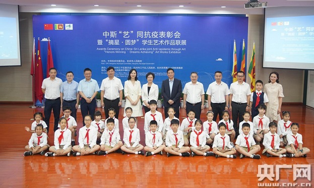 據(jù)了解,本次藝術(shù)展以“攜手抗疫”為主題,不僅加深了學(xué)生的愛國主義情懷,還促進了中國文化的傳承,更是通過校園美育,讓“中斯”友誼更深厚。2019年年底,杭州采荷第三小學(xué)教育集團組織采三學(xué)子參加斯里蘭卡“MANJAREE2020”國際繪畫比賽,榮獲一、二、三等獎30個。今年疫情期間,學(xué)校還開展了“抗‘疫’主題書畫展”“詩詠英雄,致敬逆行者”“聲援戰(zhàn)‘疫’”“聲動采三”等線上抗疫主題活動。