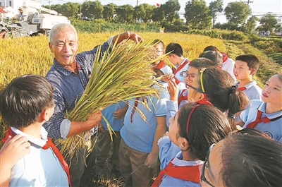 昨天下午,寧波市高塘小學聯(lián)合江北區(qū)農(nóng)技總站在洪塘街道鞍山村舉行“第37個世界糧食日”愛糧節(jié)糧教學活動。40名小學生在田間觀看晚稻收割,聽農(nóng)技員講解水稻生長知識,并動手體驗使用水分測試儀測試稻谷水分。活動讓學生們體會到了糧食的來之不易。(記者 徐文杰 王笑)