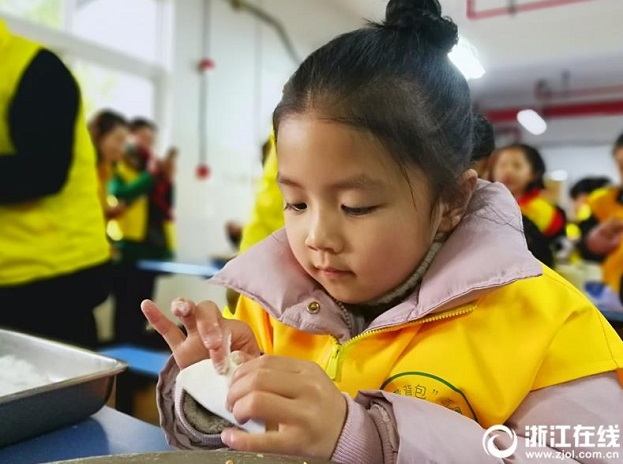 2018年2月10日早上,寧波鎮(zhèn)海,九龍湖黃背包志愿者組織23戶家庭來到位于九龍湖街道福利院,給院內(nèi)老人和孤兒一起包餃子,迎新年,現(xiàn)場洋溢著濃濃的新年味。(浙江在線拍友 唐斌權(quán) 攝)