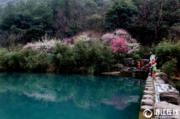 2月21日,寧波市北侖區(qū)九峰山景區(qū)近百畝梅花競相綻放,與山間溪水構(gòu)成一幅“梅”景畫,讓人們感受到了濃濃的春意。(索向魯 攝)