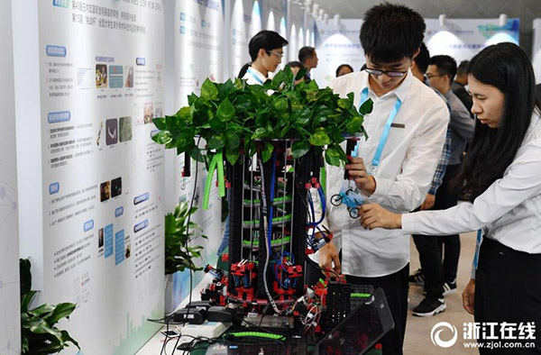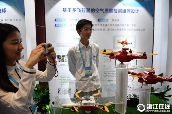 5月27日,浙江大學生優(yōu)秀科技作品展在浙大紫金港校區(qū)舉行。展覽匯集了浙江各大高校近年來在國內外各大科技競賽中的優(yōu)秀獲獎作品,展示浙江大學生創(chuàng)新創(chuàng)業(yè)的實踐成果。(記者 董旭明 攝)