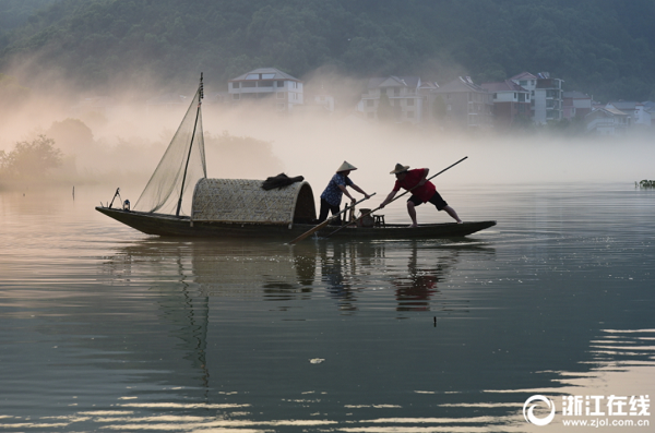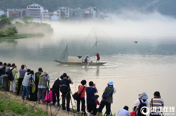 7月29日清晨,在建德市下涯生態(tài)濕地,一批江蘇、福建、安徽等地的攝影愛好者架著長槍短炮在拍攝江霧中漁家生活的場景。每逢盛夏時節(jié),新安江畔形成如夢似幻的江霧奇觀,與下涯濕地形成一道獨特的生態(tài)自然景觀,每年吸引國內(nèi)外數(shù)以萬計的游客和攝影愛好者前來旅游觀光,采風拍攝,避暑度假。(拍友 寧文武 攝)