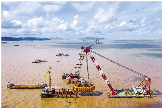 8月19日上午,寧波舟山港主通道項(xiàng)目之一的舟岱大橋第DSSG04標(biāo)段北通航孔橋施工現(xiàn)場,一個長36米、寬19米、重596噸的鋼套箱順利下放到BT2主墩。這是主通道項(xiàng)目繼主通航孔橋鋼套箱成功下放后的又一個重要節(jié)點(diǎn),標(biāo)志著BT2主墩工程由下部結(jié)構(gòu)施工正式進(jìn)入上部結(jié)構(gòu)施工。(通訊員 姚峰 葉佳磊 程學(xué)斌)