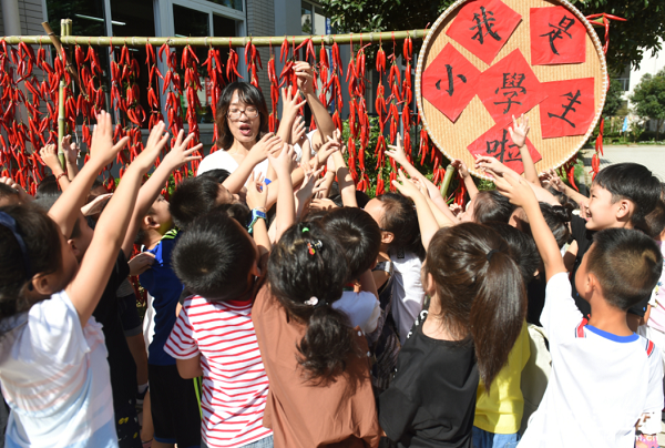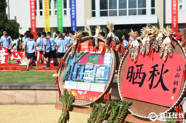 9月2日,杭州富陽區(qū)富春第七小學(xué)別出心裁,用“曬秋”的形式迎接新學(xué)期開學(xué)。菁菁校園里,果實(shí)累累,隨處可見用紅辣椒、大蒜、玉米、南瓜等果實(shí)拼成的圖案,這些圖形特別醒目,創(chuàng)意感十足。這些果實(shí)都是由學(xué)生、老師和家長在富春七小開心農(nóng)場親手栽種收獲的。學(xué)校通過“曬秋”的形式,既曬出了大家的喜悅,也讓孩子們懂得勞動的意義。