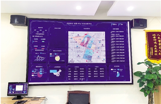 義烏興業(yè)社區(qū)“黨建+單元”社會治理智慧平臺大屏界面。(記者 王璐怡 攝)