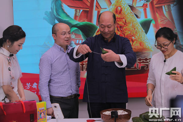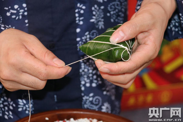 現(xiàn)場裹粽展示(央廣網(wǎng)發(fā) 張延攝)