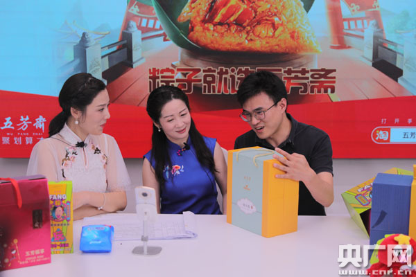 湖上直播間內(nèi)展示新品粽子(央廣網(wǎng)發(fā) 通訊員供圖)