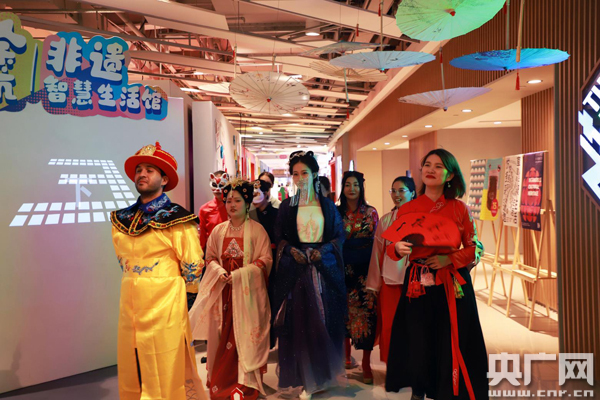 此外,還有區(qū)內(nèi)外優(yōu)秀文創(chuàng)品牌、國(guó)潮工作室、古風(fēng)愛好者齊聚活動(dòng)現(xiàn)場(chǎng),脫口秀、互動(dòng)體驗(yàn)、文化講座、非遺展覽等連番上場(chǎng),豐富多彩的活動(dòng)吸引了市民群眾的目光,更是成為了抖音、小紅書、微博等自媒體大v、網(wǎng)紅的打卡地。在活動(dòng)現(xiàn)場(chǎng),你可以看到身著漢服的姑娘們?cè)谑止ど葦偽磺榜v足挑選;牽著媽媽手的孩子們被漂亮的傘面繪制吸引了目光;年輕的媽媽們?cè)趥鹘y(tǒng)糕點(diǎn)制作的互動(dòng)展示前一展身手;而爸爸們則帶著孩子玩起了投壺。整點(diǎn)的廣場(chǎng)舞臺(tái)上,余杭滾燈,傳統(tǒng)戲曲,民間團(tuán)隊(duì)和跨界潮流同臺(tái)演出,臺(tái)下觀眾連連叫好。與此同時(shí),四樓的余杭非遺智慧生活館內(nèi),非遺課堂正徐徐開講。